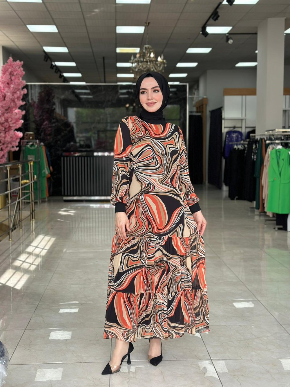 Kumaşı şifondur. İçi astarlıdır. Kuşağı yoktur.