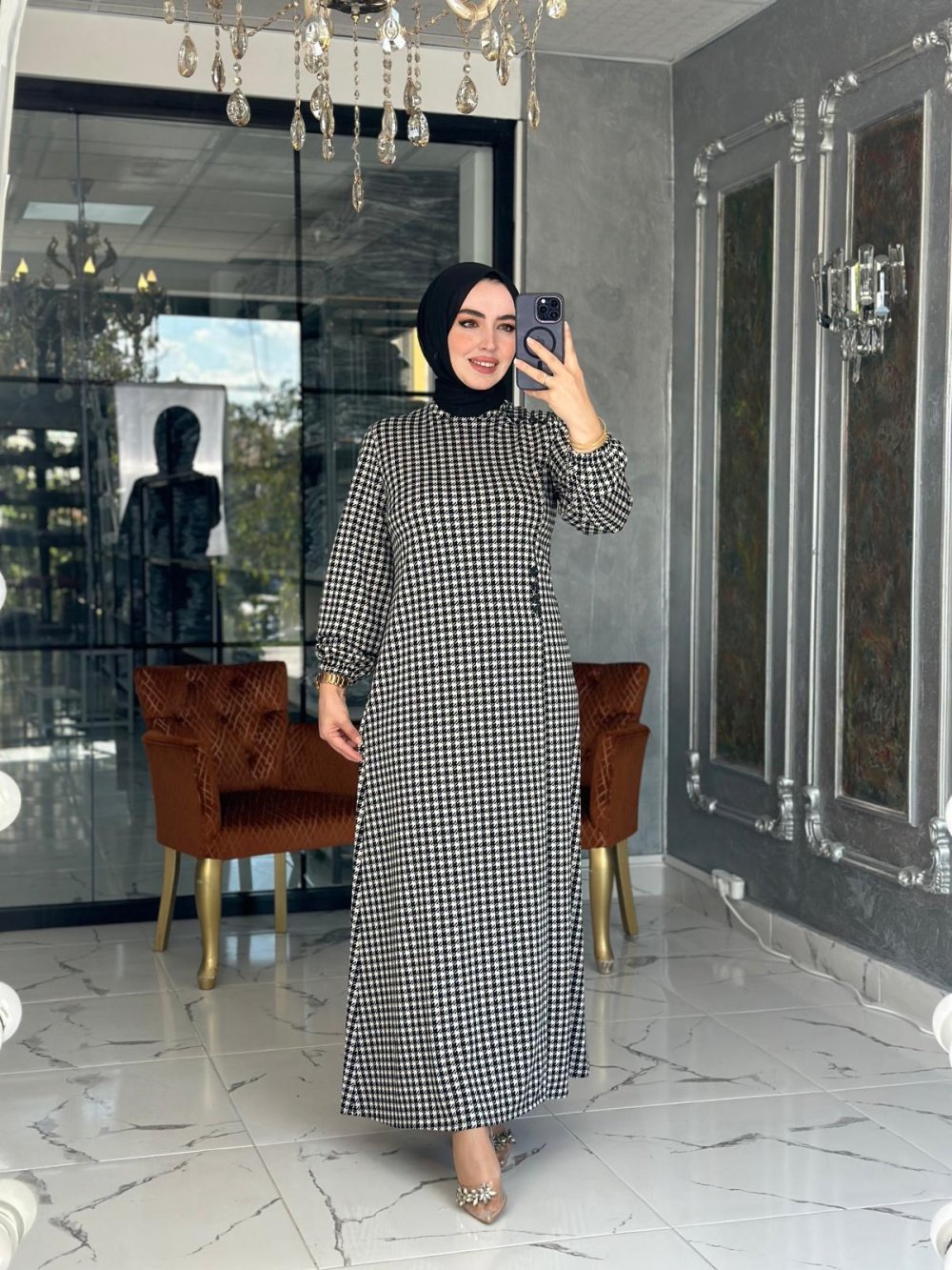 Kazayağı Elbise-Siyah Siyah