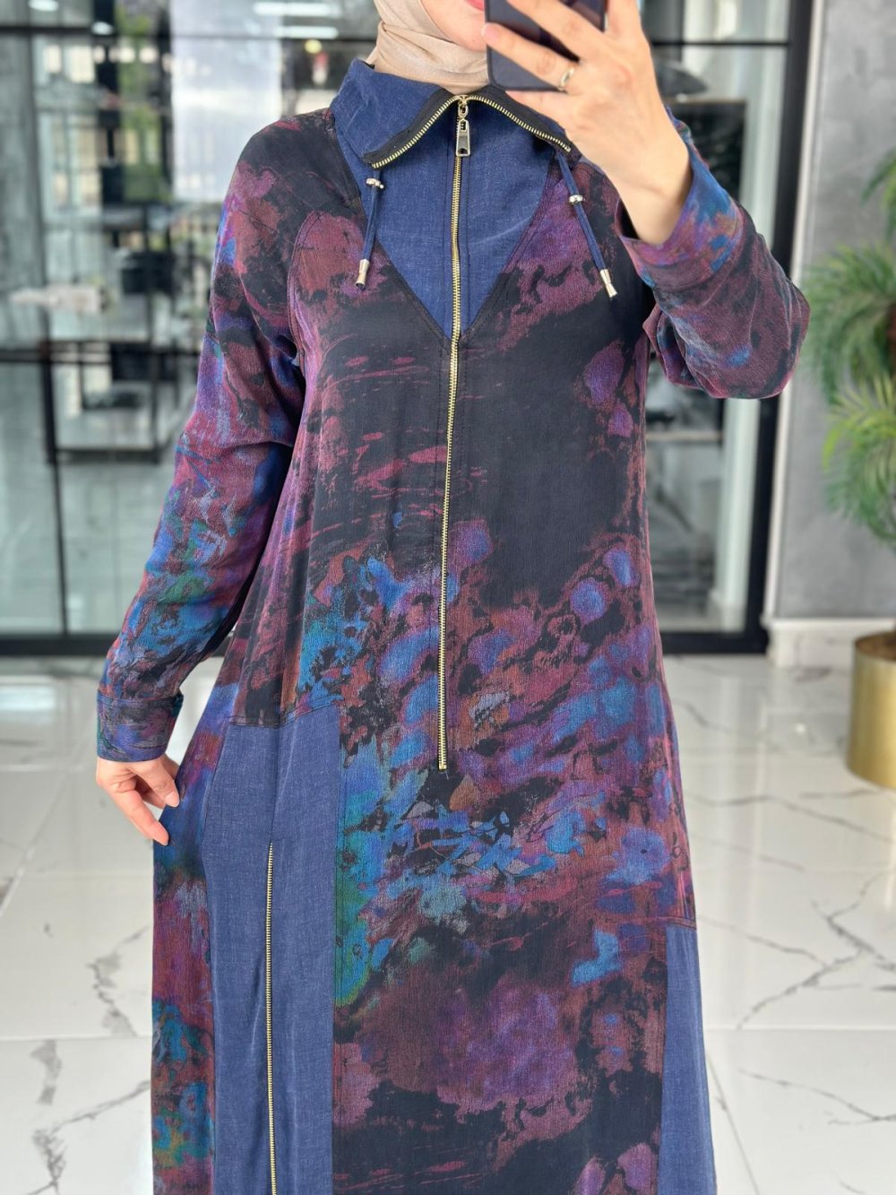 Taşlanmış İpek Qupra Kumaştır. Fermuar Detaylı, Gömlek Yaka, Arka Tünel  Detaylıdır.