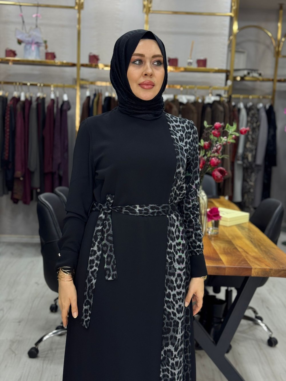 Milena Elbise Gri Leopar Gri