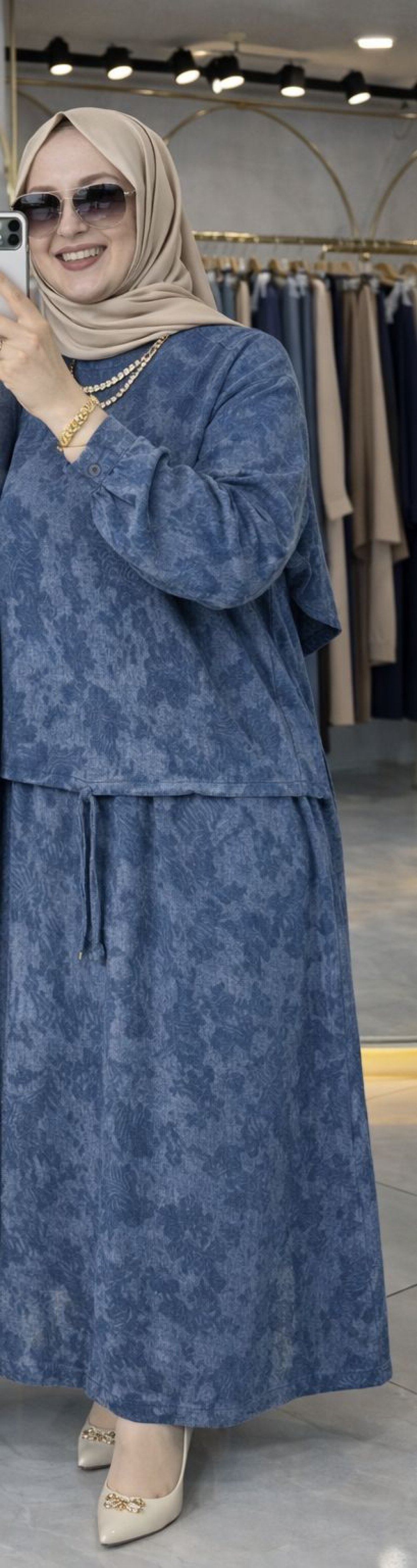 Kumaşı ipek qupradır. Tunik arkası yarım fermuarlıdır. Etek