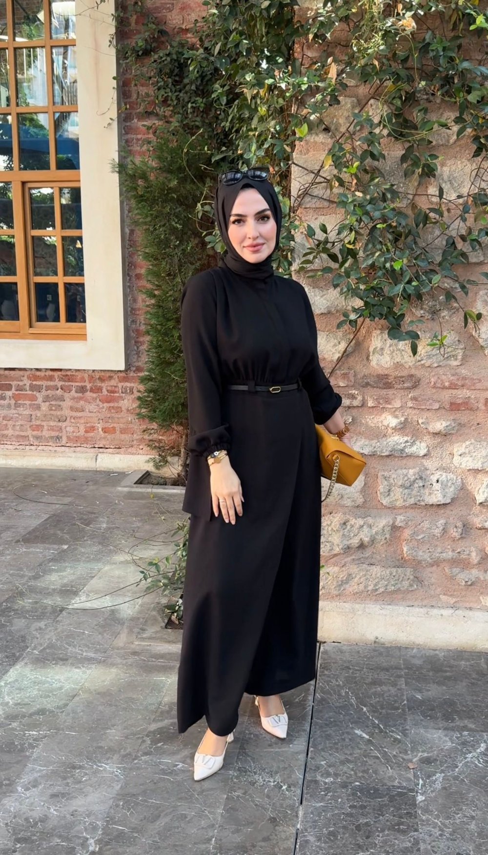 Krep kumaştır. Tek parçadır. Seyyar kemerlidir. Gizli düğmelidir.
