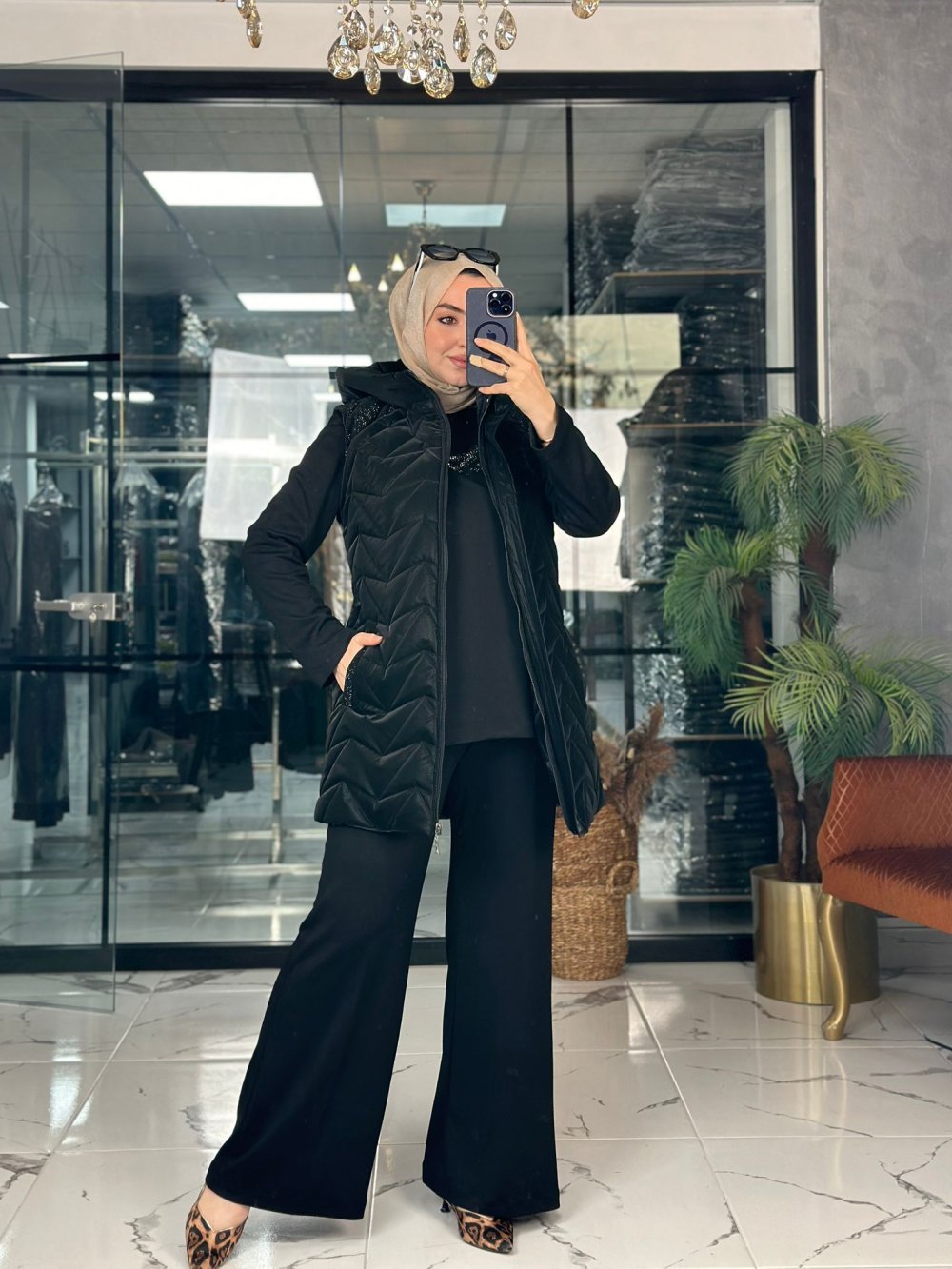Kumaşı oyshodur. Yelek kapitonedir. Pantolon beli lastiklidir.